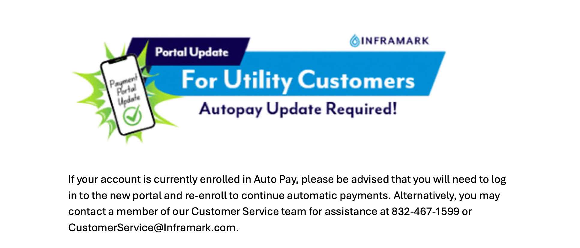 Harris County MUD No. 400- Reminder to Re-Enroll in Auto Pay